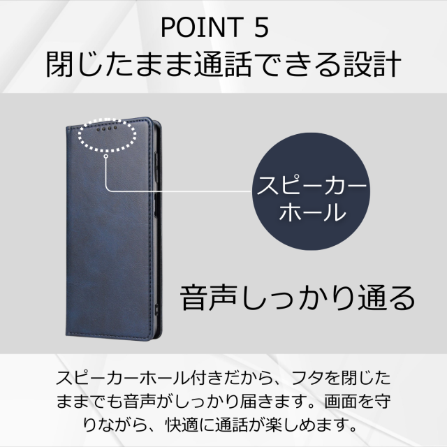 スピーカーホールのおかげでケースを開かずにそのまま通話が可能。手がふさがっているときにも役立ちます。