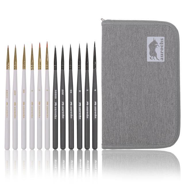 aurochs 極細面相筆12本セット 天然馬毛筆6本/ナイ ロン筆6本 ペイント プラモデル フ ィギュア 水彩画 アクリル画 日本画 デザイン ネイル