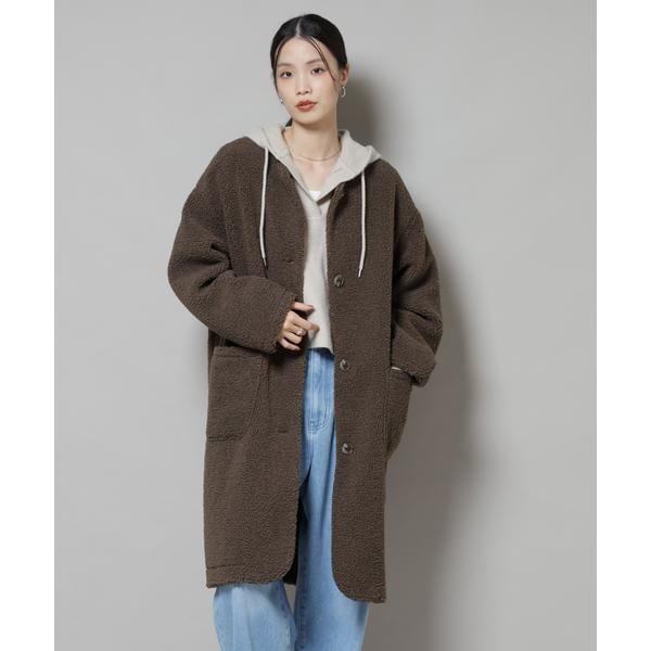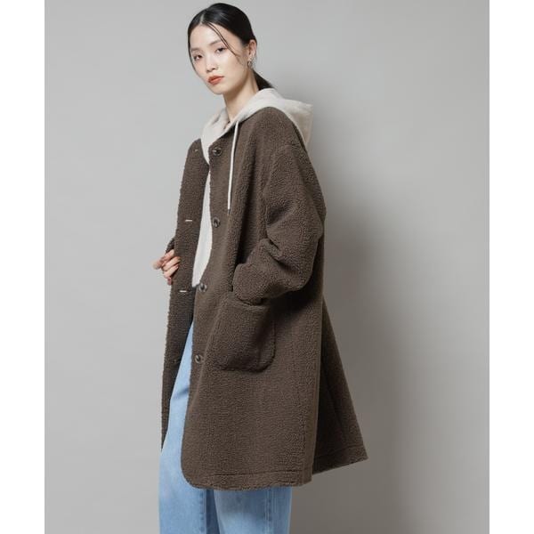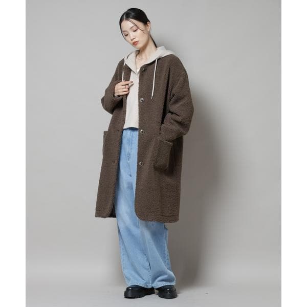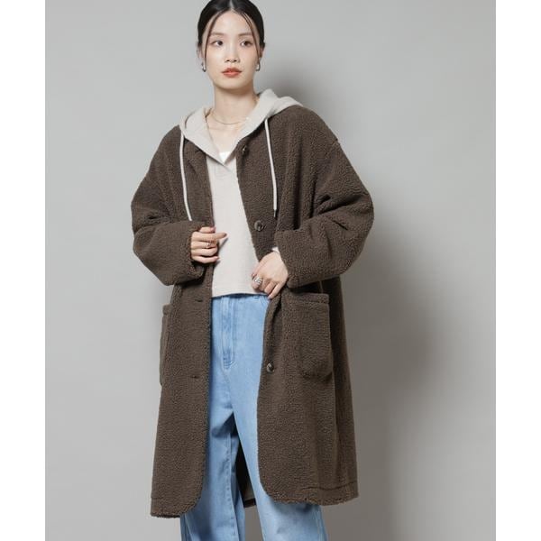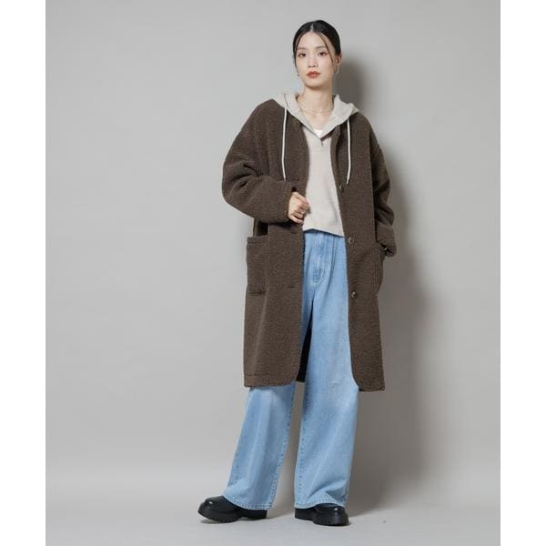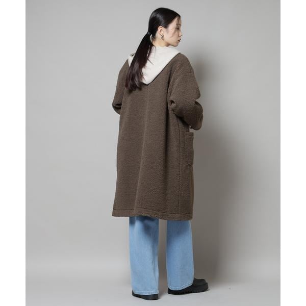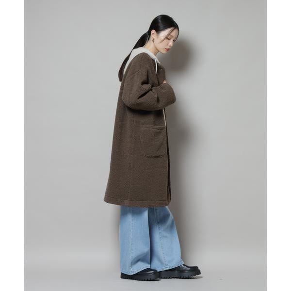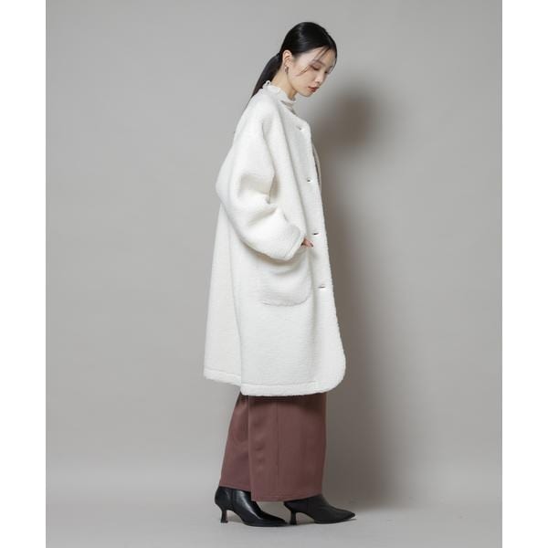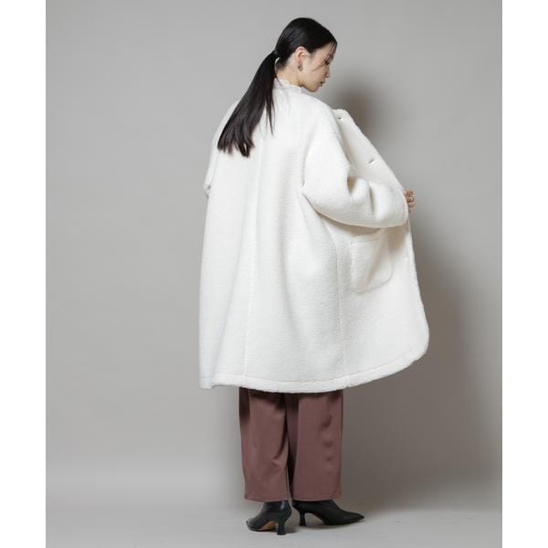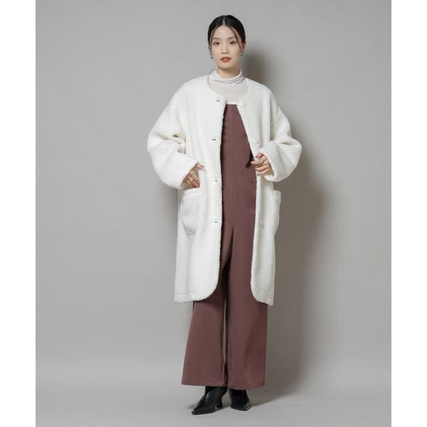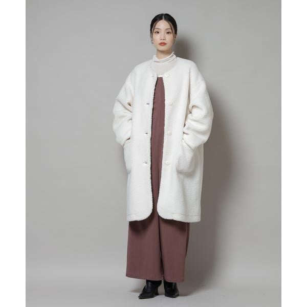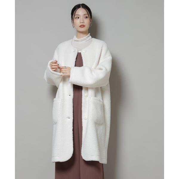 ふわっとしたボア素材で仕立てたロング丈のノーカラーコート。バサッと羽織れる軽さも魅力で、デイリーのお出かけに重宝してくれます!
