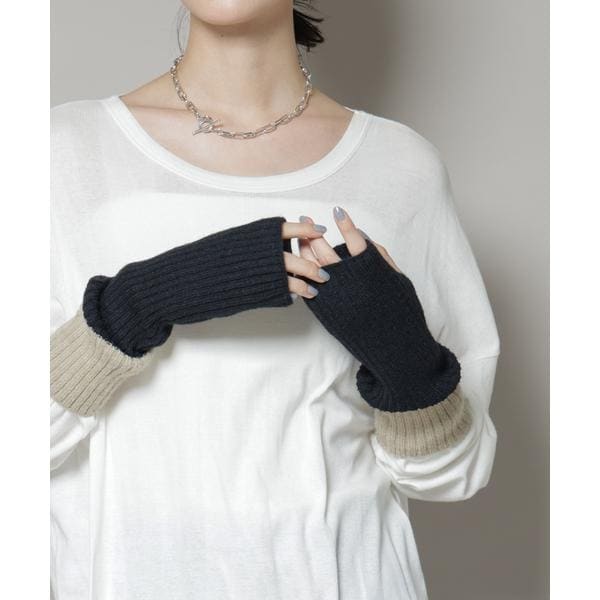バイカラーで切り替えたスタイリングのアクセントになるアームウォーマ。少し長めなので、手首あたりでクシュクシュとさせて着用するのも可愛いひと品です。