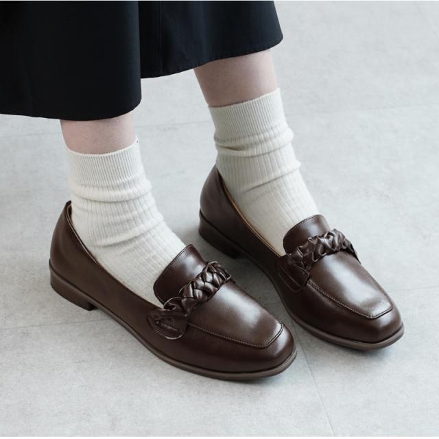 【編み込みレインローファー スクエア/約2.5cmヒール】タイプ