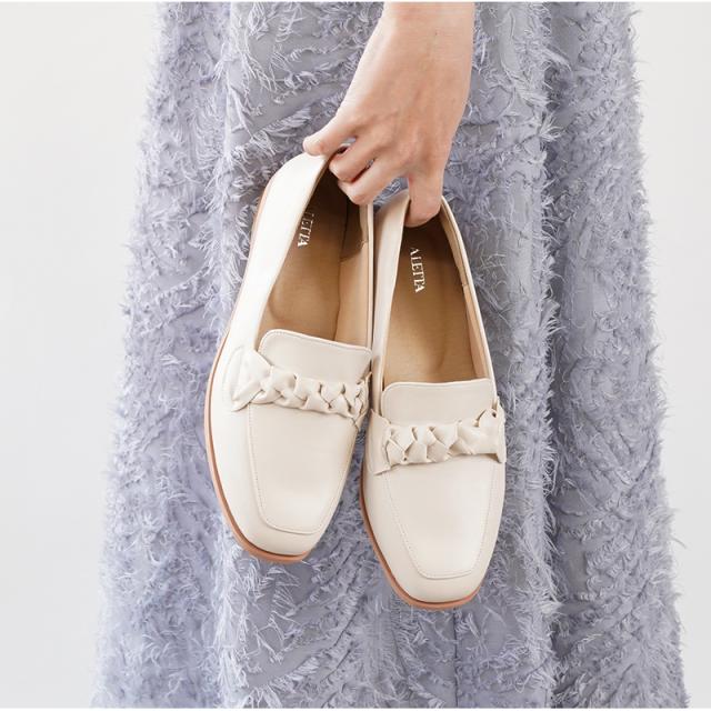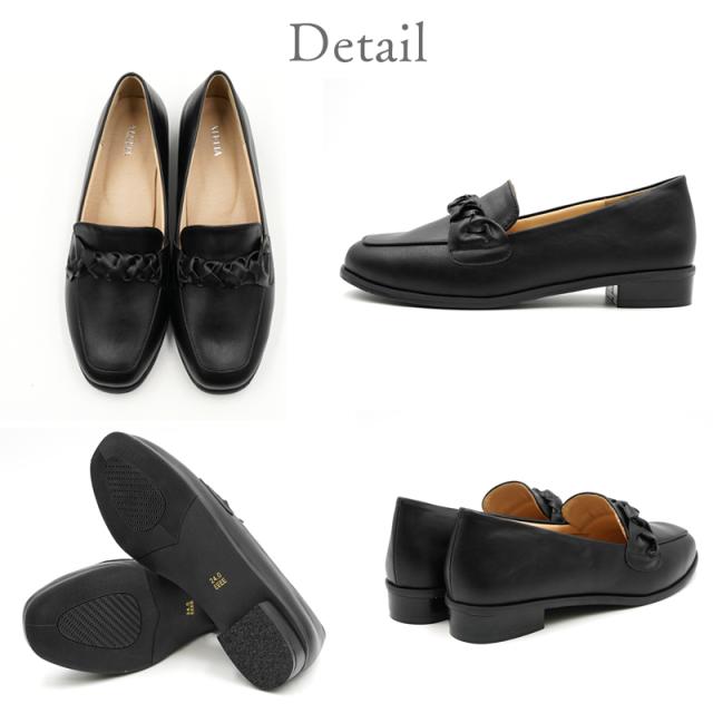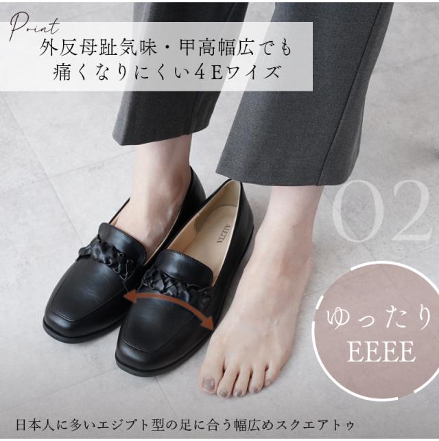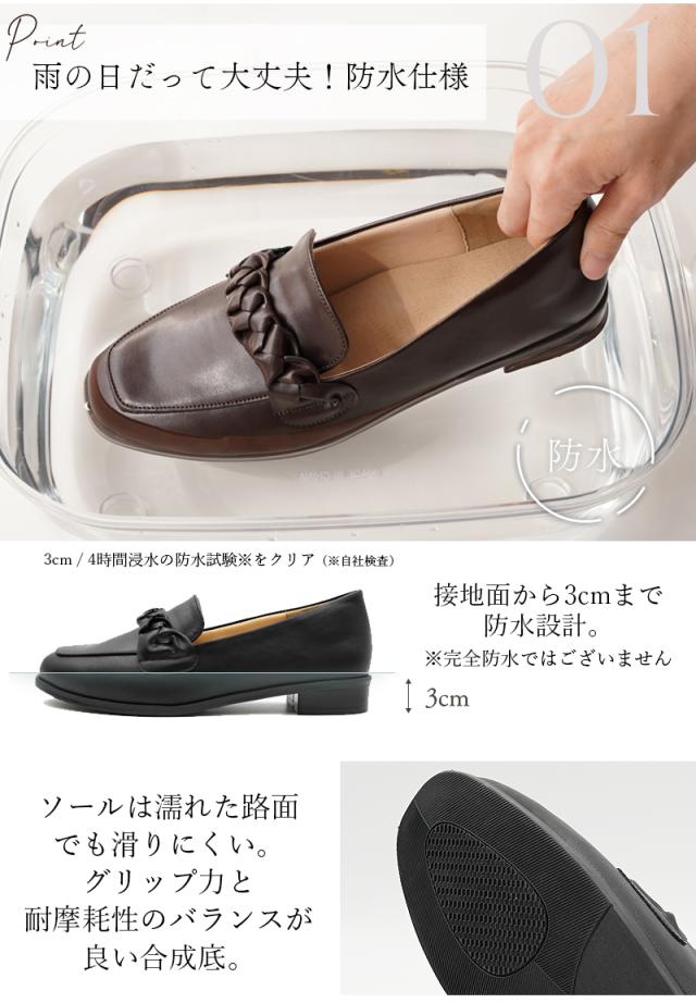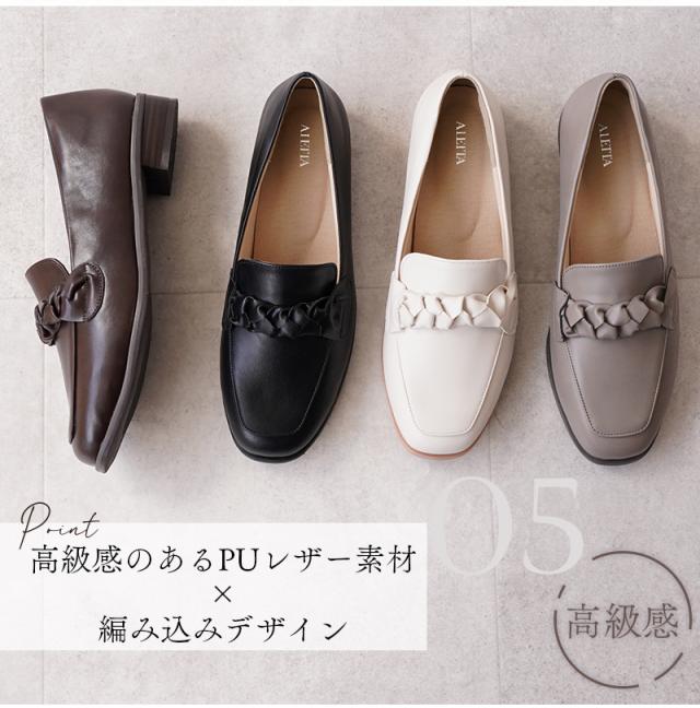 ローファー 防水 スクエアトゥ 約2.5cmヒール レイン 編み込み ローファー レディース 外反母趾気味 甲高 幅広 22.5-25cm 究極のプレーン アレッタ 太ヒール 痛くない 歩きやすい 走れる 疲れない 通勤 ビジネス 仕事 オフィス 入学式 黒 雨 きれいめ 大人 ALETTA 送料無料