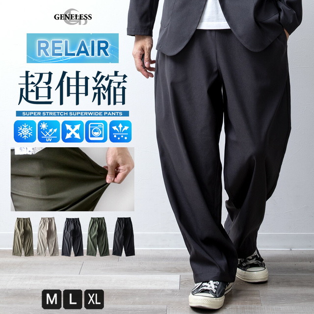 ワイドパンツ メンズ スーパーワイド 吸水速乾 ゆったり イージーパンツ RELAIR ワイド パンツ イージーケア ウエストゴム ロングパンツ レギパン 接触冷感