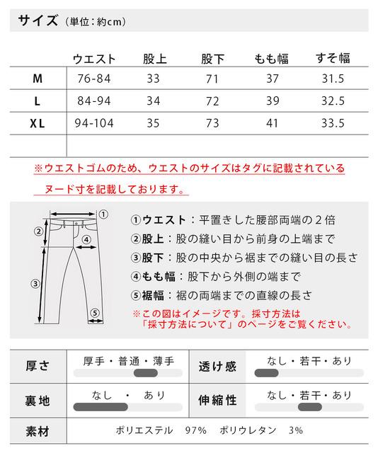 | サイズ | ウエスト | 股上 | 股下 | もも幅 | 裾幅 |