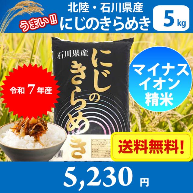 お一人様1個まで【令和7年産】【精米】北陸・石川県産 にじのきらめき 5kg 送料無料!!(北海道は別途700円かかります。 沖縄配送不可。)