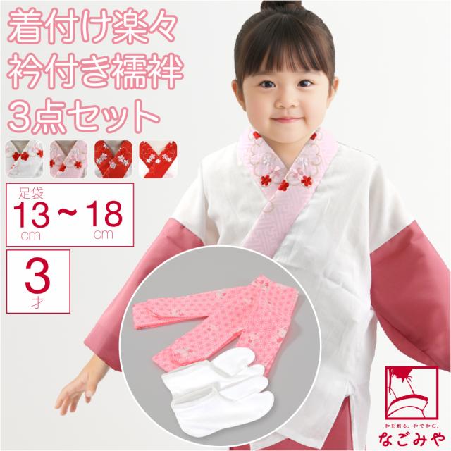 足袋サイズが選べる。3歳の女の子の七五三向け、うそつき襦袢と着付け小物のセット。