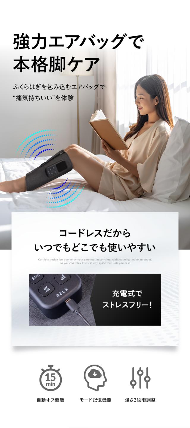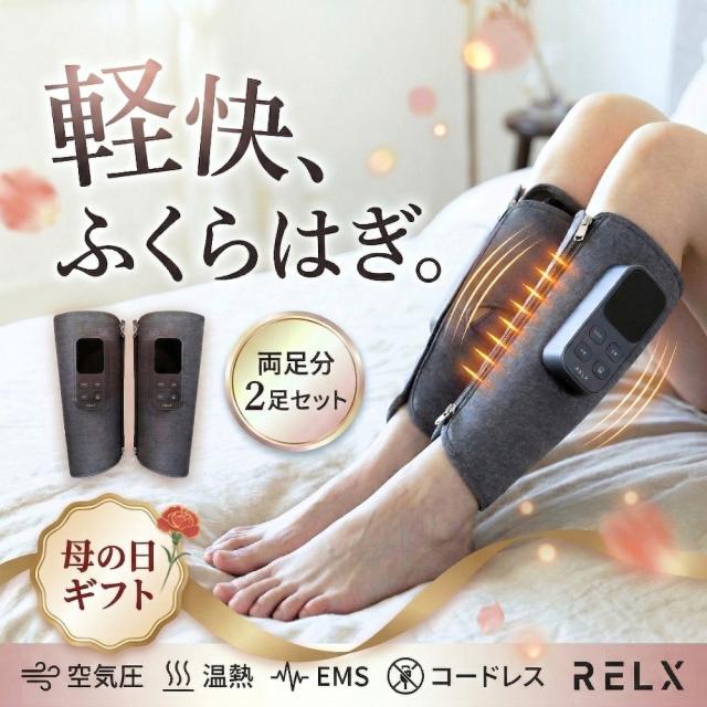 レッグケア【日本企業企画】ふくらはぎケア 二足入り コードレス ハイパワー 三段階調節 軽量 充電式 空気圧 温熱 EMS ギフト プレゼント 送料無料 誕生日 プレゼント ギフト RELX
