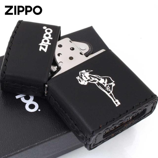 Zippo ジッポライター 革巻き ウインディ 銀箔押し ブラック B-WS メール便専用商品