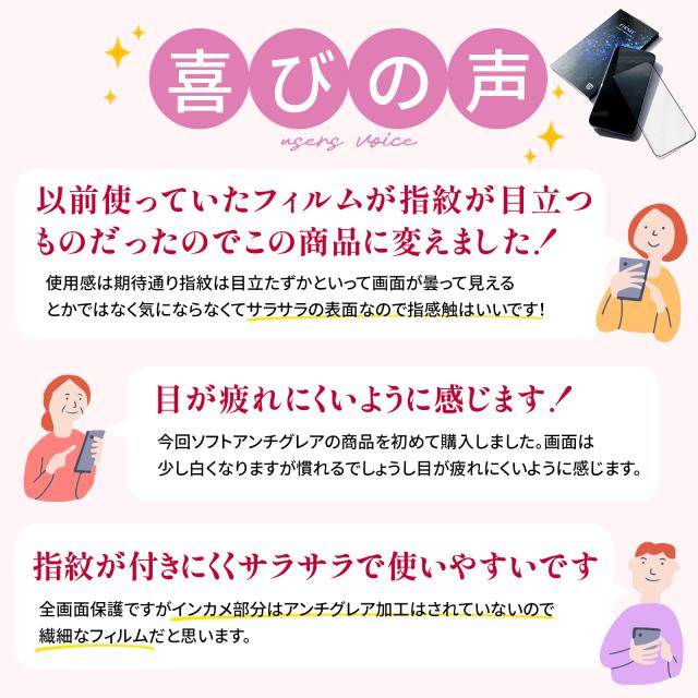 [ 縁まで硬い硬度10Hガラスフィルム ] 【 優れた5つのポイント 】 (1) 透過率の高い 2.5Dクリア保護フィルム、iPhoneの美しさをそのままに。 (2) 全面保護タイプなので、iPhoneの端までしっかり保護。 (3) 硬度10Hの強化ガラスで、画像や映像も色鮮やかに映します。 (4) オレオフォビックコーティングで、ガラスフィルムの汚れもクロスで拭き取れます。 指紋防止加工で汚れや指紋がつかない。 (5) 簡易ブルーライトカットに加え、太陽光(紫外線)から画面を守る「UVカット」。 【 縁まで硬い硬度10Hガラスフィルム 】 新しい時代のiPhone保護フィルムが登場。 独自アンチグレア技術によって開発されたこのフィルムは、 オリジナルテクノロジーが凝縮された逸品。 硬度10Hガラスで作られ、頑丈さと割れない性能を備えており、 本体を傷つける心配はありません。 iPhone専用に設計されているため本体をしっかりと保護します。 アンチグレア機能により、画面上の反射や眩しさを軽減し、快適な視認性を提供。 さらに指紋防止のコーティングにより、指紋がつかない。 【 ボンディングレイヤー加工 】 万が一ガラスフィルムが破損してしまった際にも、破片が飛び散ることなく吸着します。 欠けたガラスフィルムで指を怪我することを防ぎます。 【 コーティングを3回にわたり実施 】 高品質オレオフォビックコーティングを実施することで、 なめらかなスムーズな操作性と、指紋等の油脂を拭き取りやすい効果が持続。 指紋防止加工により、指紋がつかないさらさらとした画面を保ちます。 【 軽快な操作感を実現 】 タッチ感度をキープすることで、様々なモバイルツールからゲームまで素早くお楽しみいただけます。 指紋防止コーティングにより、操作中の指紋がつかない快適さを提供。 指紋がつかないため、長時間プレイでも画面がさらさらと綺麗なままです。 【 10H硬度で傷から守る 】 画面にキズがつきにくい表面硬度10Hのガラス材を使用。 キズに強いだけじゃないガラスフィルムが誕生。 強靭な耐久性を誇り、金属との摩擦や衝撃により強い構造となっています。 強固な防御力で大切なiPhoneをキズや衝撃からしっかり守ります。 さらに、指紋防止加工により、さらさらとした指紋がつかない清潔感をキープ。 【 白くなりすぎないなめらかなアンチグレア 】 独自の配合で生み出したアンチグレアフィルムは、 一般的なアンチグレアフィルムに比べて白くならず、さらさら快適な操作性を実現。 指紋防止機能により、指紋がつかず、常にクリアな視界を保てます。 【 ブルーライトカット機能搭載 】 このフィルムは高品質なガラス素材とブルーライトカット機能を組み合わせ、 目の疲れや乾燥を軽減し、睡眠の質を向上させます。 指紋防止機能で反射を防止するため太陽光下でも見やすい画面に。 指紋がつかないため、視認性が良く目にも優しいです。 【 2.5Dエッジ iPhone専用ガラスフィルム 】 一般的なガラスフィルムはフチまで保護できません。 当製品はiPhone画面ギリギリまでカバーするために独自加工をしました。 なだらかに湾曲したフチがフロントガラスにフィットし、エッジの段差を感じさせないため、 音ゲーやパズルゲームなどのスマホゲーム用にもおすすめ。 指紋防止コーティングで、ゲーム中の指紋がつかない快適さを提供。 指紋がつかないため、ゲームプレイもさらさらとスムーズに。 【 iPhoneケースにガラスフィルムが干渉しません 】 フロントガラスの継ぎ目ギリギリまでのフルカバー仕様ですが、画面枠の接着を数ミリ内側にずらすことで、 iPhoneケース(手帳型、ジャケット型、バンパー型)に干渉することなく装着可能に。 iPhoneフラット仕様にも対応し、フィルム1枚1枚がiPhone本体の機種別設計となっており、 iPhoneのフォルムを損なわず、適度な光沢加工が美しい仕上がりに。 【 10H耐久強化ガラス 傷防止 飛散防止 全面保護 】 カバンやバッグの中でも全面保護のフルカバー設計ガラスフィルムで、 iPhoneの液晶をフィルムが傷から守ってくれるので安心。 飛散防止フィルム加工で万が一割れたときも、破片が飛び散りにくい。 さらに指紋防止コーティングで、持ち運び時の指紋がつかない清潔さをキープ。 【 オレオフォビックコーティング 保護シート 吸着性UP 指紋防止 】 吸着加工により持ち運び時の保護フィルム剥がれを防止。 特殊コーティングで油や水をはじき、付いた指紋もサッと拭き取り。 防汚コーティングによりなめらかな操作性を実現。 タッチ感度が下がることなく、ゲームなどを行う際のスワイプ操作もスムーズです。 ガラスフィルムにより日焼け止めやハンドクリームなどの付着を防ぐことができ、 iPhone本体を劣化からフィルムが守ります。 指紋防止機能により日常の使用で指紋がつかない快適さを実感。 |