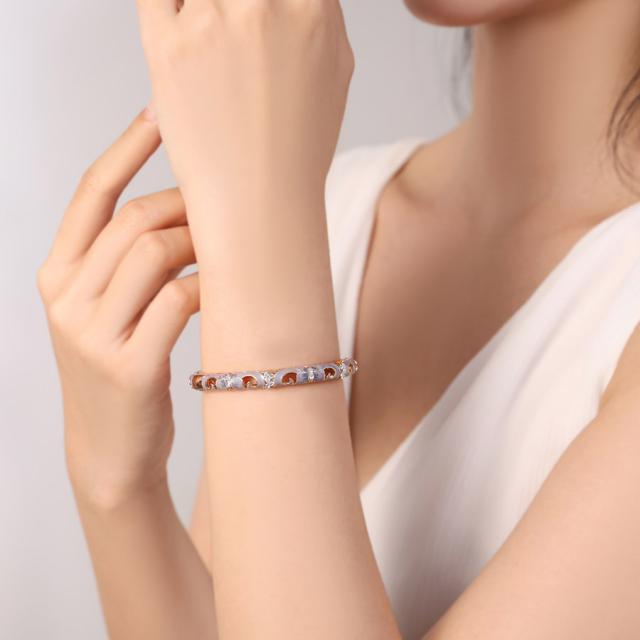 <ブレスレット>バングル クリスタルガラス付き オリジナルデザイン 職人手作り 誕生日プレゼント 母の日ギフト クリスマスプレゼント 透かし模様 キラキラ 華やか 東京銀座PICALS 東京銀座ピカルス ピィアース