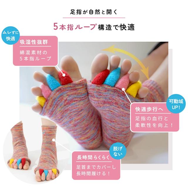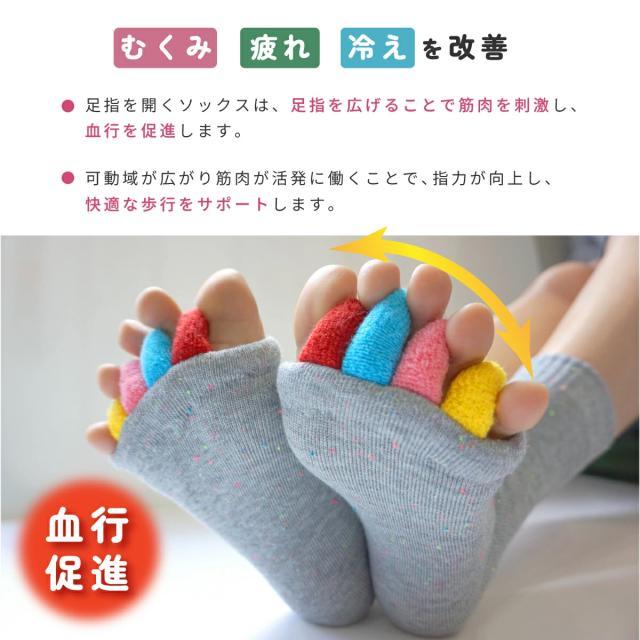 ・足指を開くソックスは、足指を広げることで筋肉を刺激し、血行を促進します。