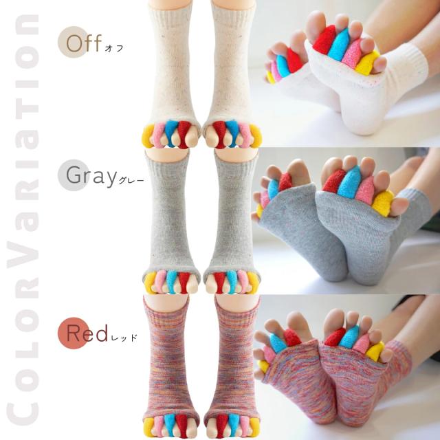 トップマン工業 あしゆび開放ケアソックス 足指 広げる ソックス 靴下 セパレーター 男女兼用 TM036 レッド オフ グレー【メール便送料無料】靴下感覚で足指を開いてフットケア!