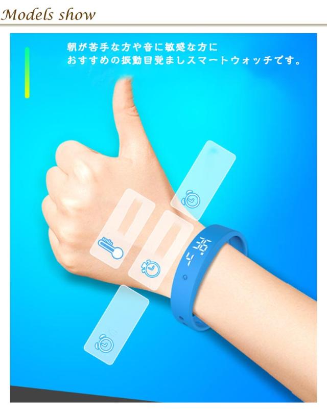 | 音じゃなく「振動」で起こす! 二度寝防止設計 振動目覚ましスマートウォッチ 朝が苦手な方や音に敏感な方におすすめの振動目覚ましスマートウォッチです。 手首にしっかりとフィットし、強力なバイブレーション機能で直接振動が伝わり、耳に頼らず確実に起床が可能です。 防水仕様(IPX57)でスポーツや日常使用にも最適。見やすいデジタル表示、シンプルで軽量なデザイン、そして充電式で繰り返し使えるエコ設計。 仕事や学業、アウトドアにも幅広く活用できます。 強力バイブレーションアラーム:周囲を起こさず、自分だけに伝わる振動。 二度寝防止設計:スヌーズ設定で深い眠りからでもしっかり起こしてくれる。 IPX57相当の防水仕様:汗や雨にも強く、スポーツや外出時でも安心。 軽量・コンパクト設計:長時間の装着でも違和感なし。 USB充電式:1回の充電で長時間使用可能。電池交換不要。 タイマー・アラーム機能付き:勉強・料理・運動時の時間管理にも最適。 使用シーン/使用対象者 使用シーン: 早朝の起床サポート(家族を起こさず静かに起きたいとき) 寝坊・二度寝対策として 電車やバスの乗り過ごし防止 試験勉強・ポモドーロ学習法のタイマー用 ランニングやトレーニング時のアラーム用途 工場勤務など騒音下での時間管理用 | |