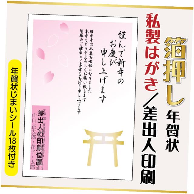 箔押し年賀状 私製はがき 20枚 文章印刷済み 2026年 差出人印刷込み(デザイン:hakuoshi10) うま 馬 午年