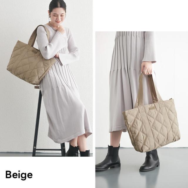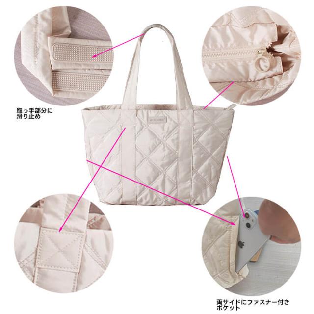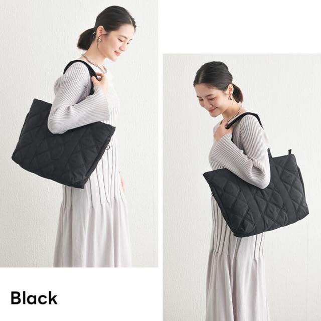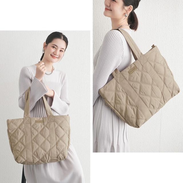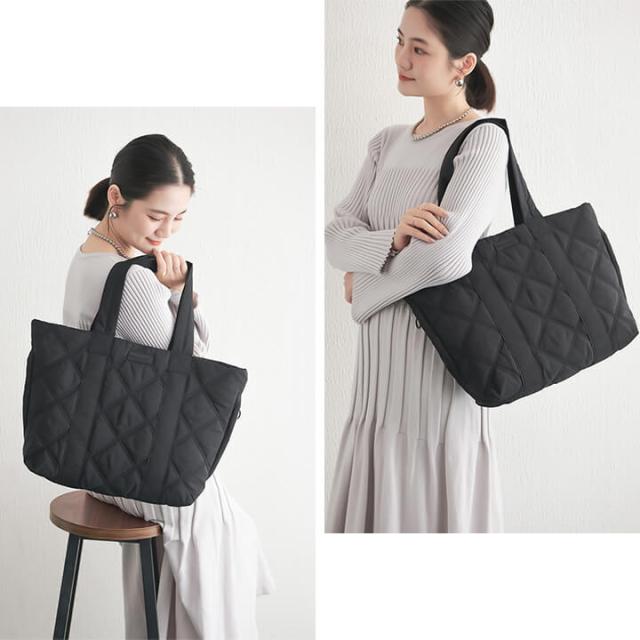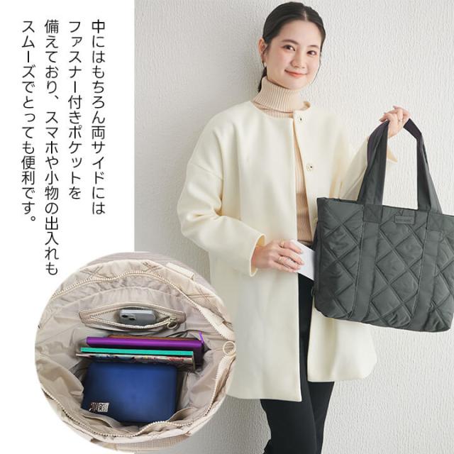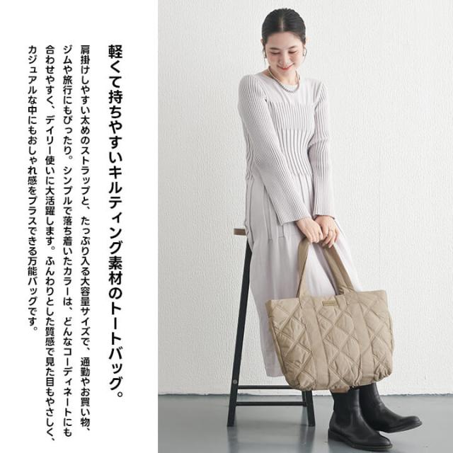 軽くて持ちやすいキルティング素材のトートバッグ。
