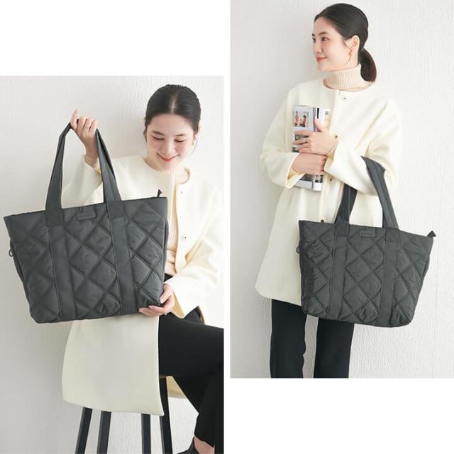 トートバッグ バッグ キルティングバッグ 上品 ナイロン レディース トート A4 大容量 通勤 通学 お出かけ ジム 旅行 ナイロンバッグ ファスナー マチ付き ポケット付き デイリー たっぷり収納 ショルダーバッグ 手提げバッグ 収納 大人 ママ マザーバ