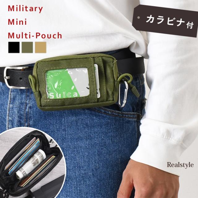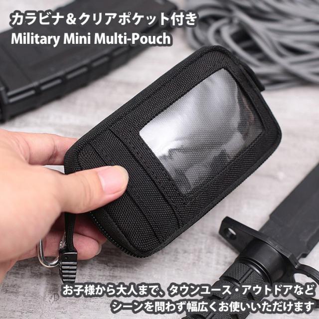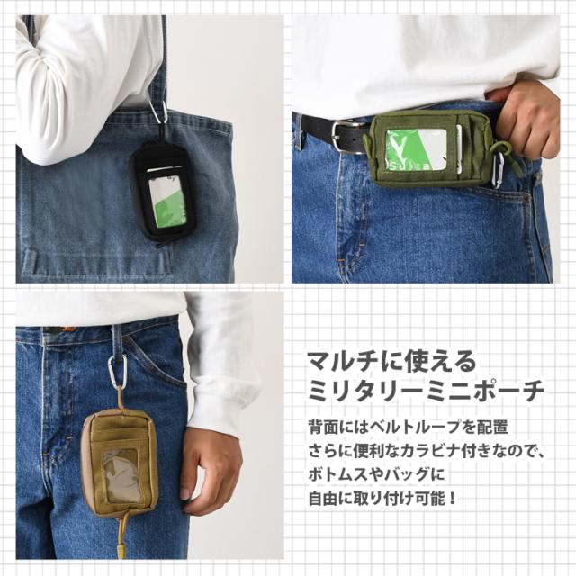 カラビナ&クリアポケット付き!マルチに使えるミリタリーミニポーチ