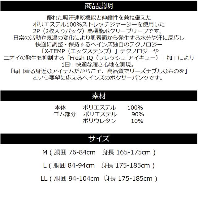 ヘインズ独自のテクノロジーにより1日中快適な履き心地を実現した メンズ ボクサーパンツ 2枚組 M L LL