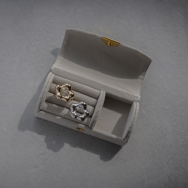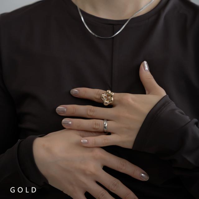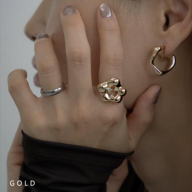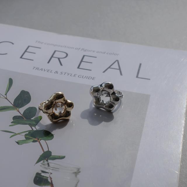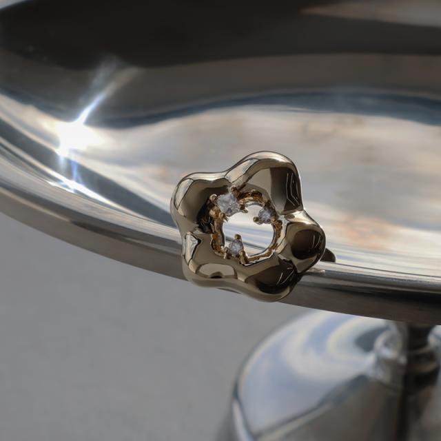 手書きで描いたような緩やかなニュアンスラインが可愛らしいフラワーモチーフのリングです。