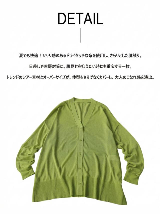 na-00524 シアーカーディガン サマーニット 羽織 軽量 ゆったり 体型カバー 薄手 ロングスリーブ 涼しい 冷房対策 高見え モード 大人カジュアル 前開き ワイドシルエット 重ね着