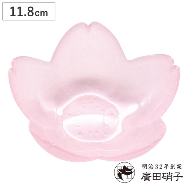 廣田硝子 鉢 はなほのか桃 小鉢 ( 11.8cm ガラス 日本製 器 うつわ 小さい 和 食器 おしゃれ かわいい ピンク 桃 花 )