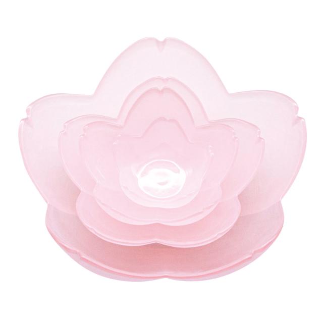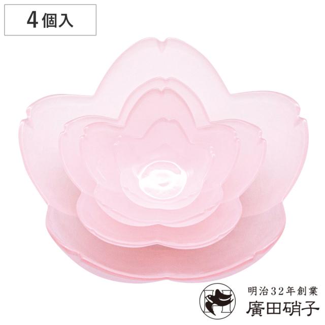 はなほのか桃 お皿 四点揃い ( ガラス 日本製 プレート 器 うつわ 豆鉢 小鉢 中鉢 盛鉢 和 食器 おしゃれ かわいい ピンク 桃 花 )