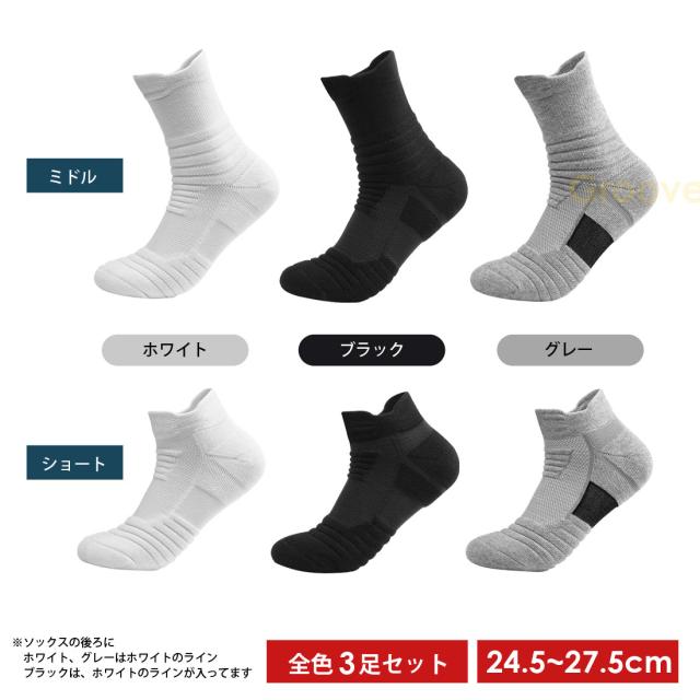 スポーツ ソックス メンズ レディース 3足 セット 厚手 靴下 ランニングソックス くるぶし ショート丈 靴擦れ防止 速乾 通気性 部活 GLF-027