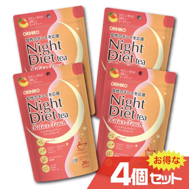 ナイトダイエットティー リラックスピーチ 20袋x4個セット オリヒロ ORIHIRO サプリメント ノンカフェイン ハーブティー 夜用 すっきり むくみ 睡眠 美容