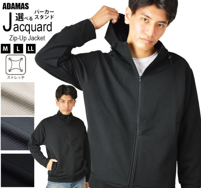 ジャケット ブルゾン メンズ 無地 パーカー フードジャケット スタンドジャケット トラックジャケット ストレッチ ハイネック ストレッチジャケット ジップアップジャケット ジップジャケット ジャガード 幾何学柄 秋 冬 春 ゴルフ スポーツ ライトアウター