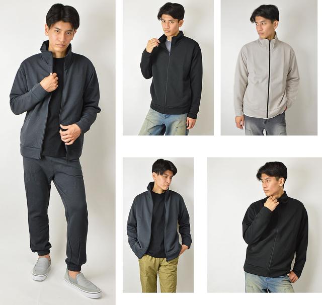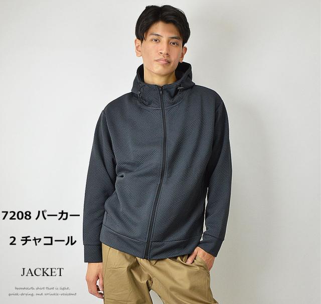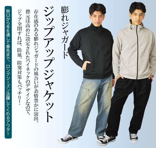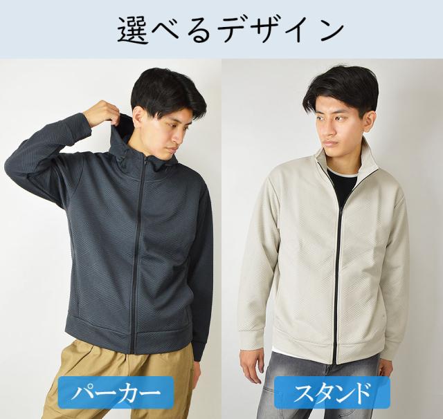 選べる「パーカー」「スタンド」膨れジャガード ジップアップ ジャケット