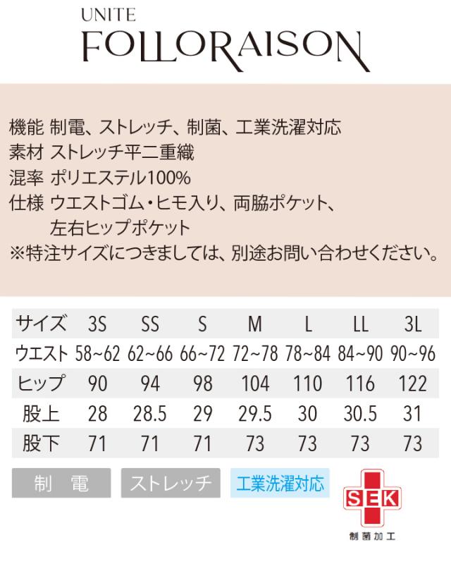 パンツ 医療 白衣 FR-0009 UNITE FOLLORAISON 男女兼用 上品 エレガント エステ サロン 看護師 医師 透防止 制電 ストレッチ 制菌 イージーケア 工業選択対応 チトセ ユナイト