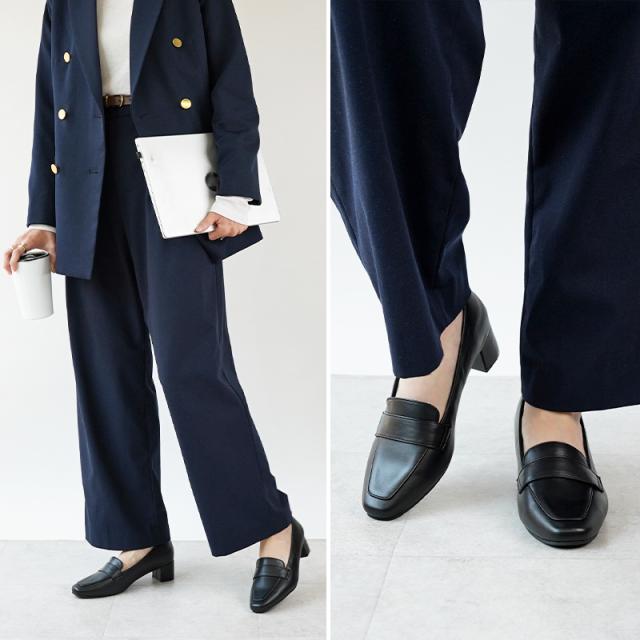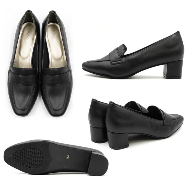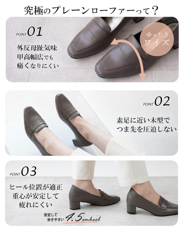 ローファー 4.5cmヒール 全4色 痛くない レディース ローファー 甲高幅広 軽量 大人 靴 柔らかい ブラック フォーマル カジュアル セレモニー 歩きやすい 仕事 営業 太ヒール 入学式 卒業式 オフィス ビジネス 婦人靴 ALETTA 究極のプレーン