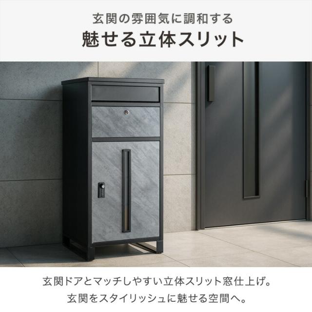 “魅せる” 宅配ボックス 押し込み式 ポスト 一体型 複数投函 OK 大容量 135L ゼロリターン ダイヤル式 鍵付き 一戸建て用 戸建て メールボックス 郵便ポスト ポスト一体型 置き型 置き配ボックス 防水 大型 おしゃれ LIVBOX リブボックス