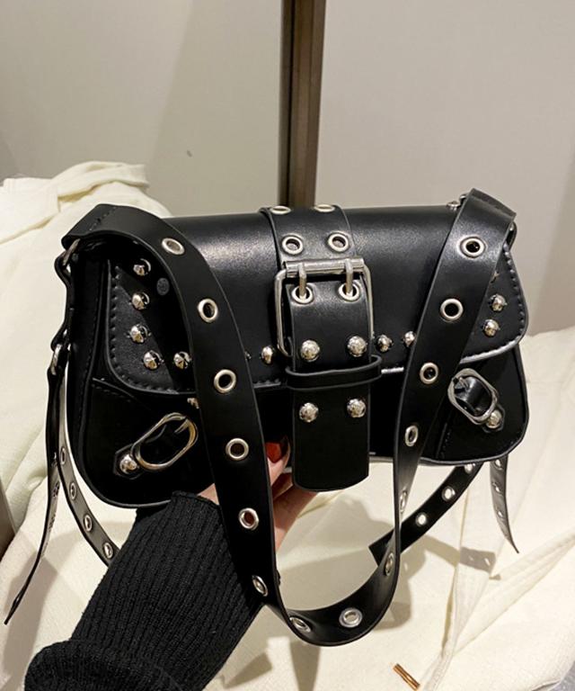 プレーンなPUレザーにシルバースタッズ&ハトメを打ち込んだ、強めY2Kデザインのハンドバッグ!