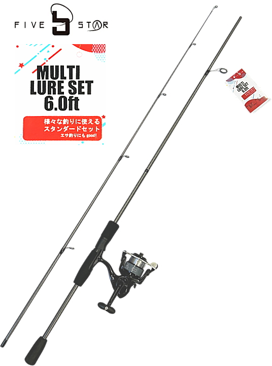 ルアー入門セット ファイブスター マルチルアーセット 6.0ft ガンメタ / ロッド+糸付きリールセット
