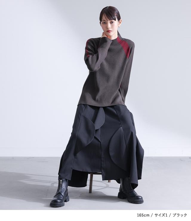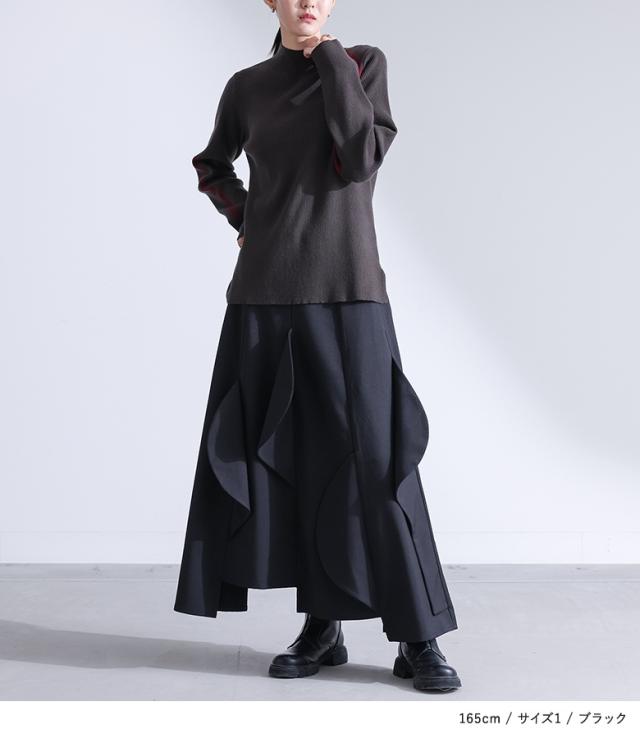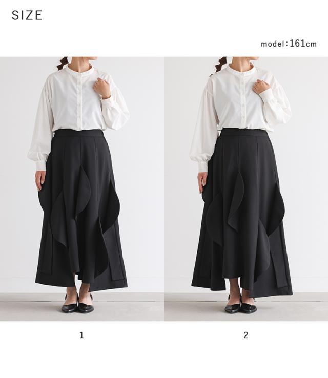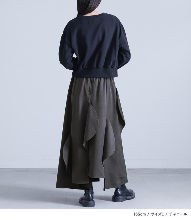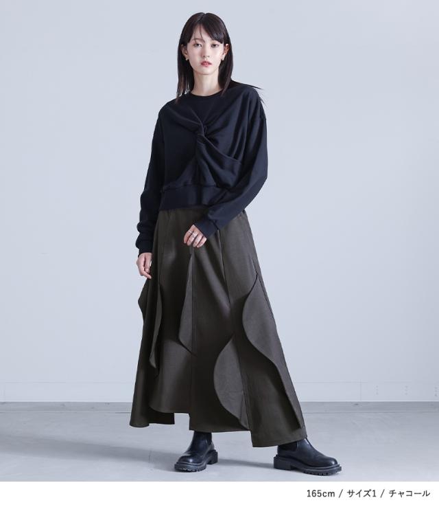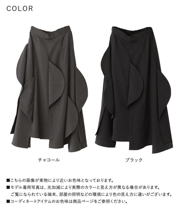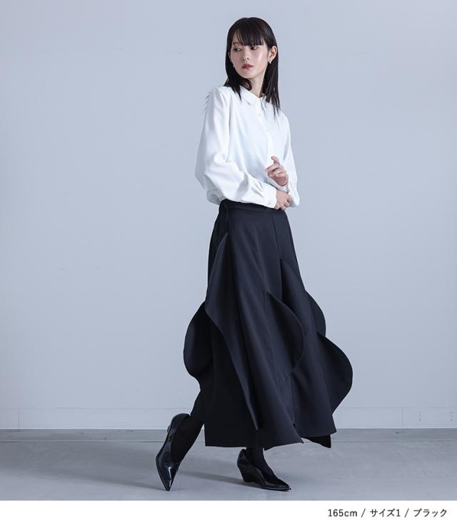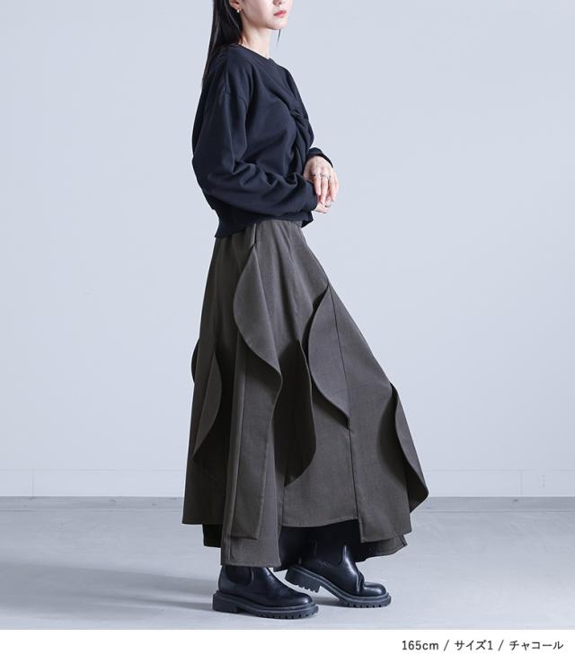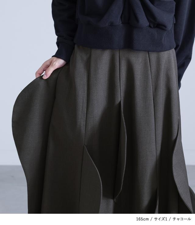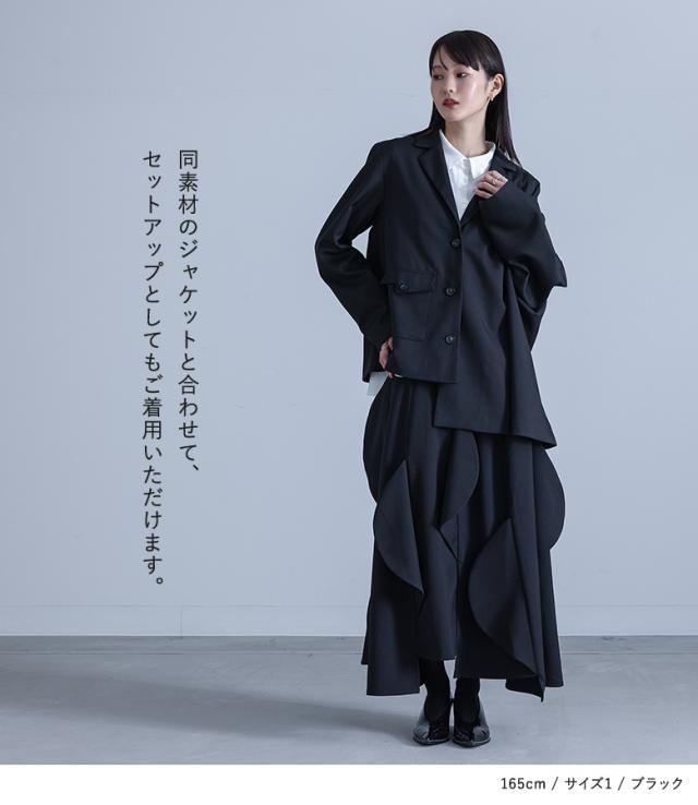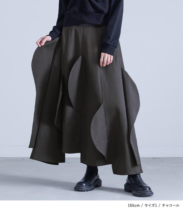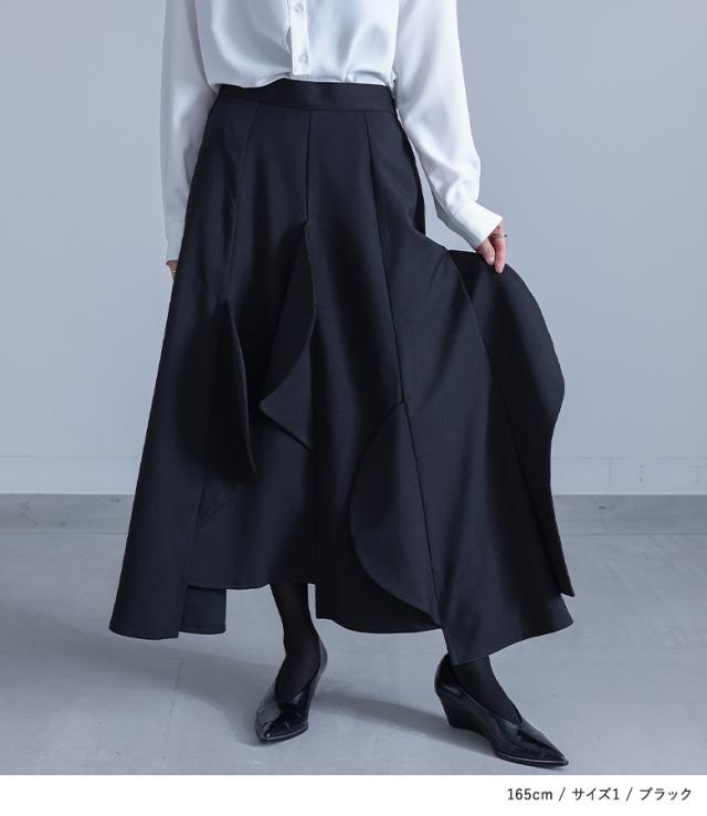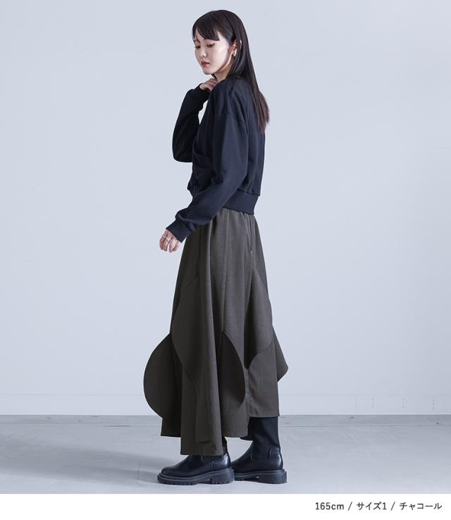 <冬新作>『ハーフサークルモチーフスカート』【メール便不可】【30】[フレアスカート ロング レディース ボトムス セットアップ対応 アシンメトリー カーブモチーフ 裏地付き スーツ生地 ポケット 春 秋]