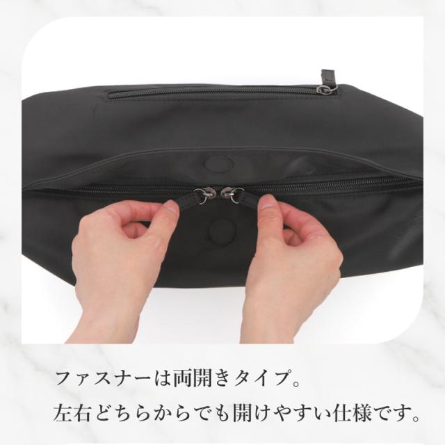 さらに両開きファスナーで左右どちらからでも開けられます。