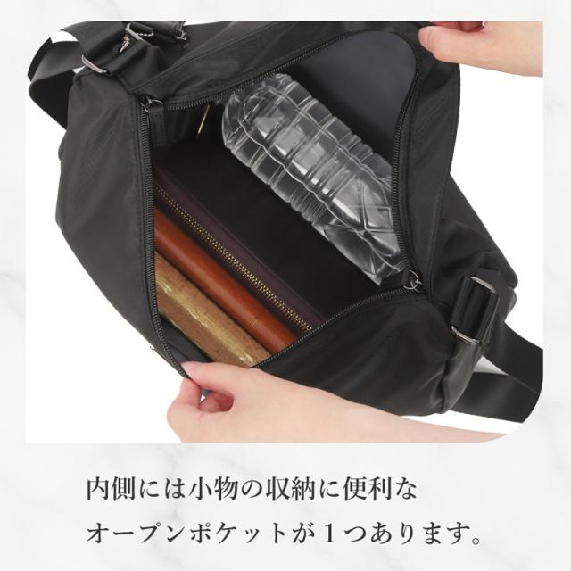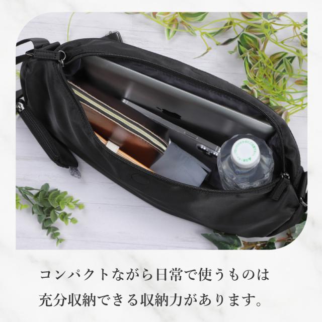 日常のお出かけにちょうどいいサイズ感と使いやすさが魅力の撥水舟形ショルダーバッグ。
