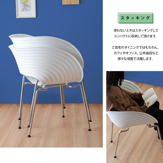 スタッキング デザイン チェア ダイニング ホワイト wave ウェーブ スチール脚 カフェ オフィス 公共施設 椅子 イス アーティスティック ウェーブ模様 積み重ね コンパクトに収納 オーバル型