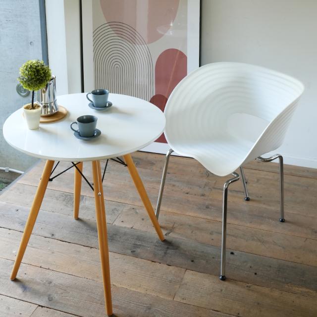 ナチュラルなホワイトカラーにウェーブ模様の加工が浮かび上がり、見る角度によっても印象が変わる不思議な魅力あるデザインのチェアーです。