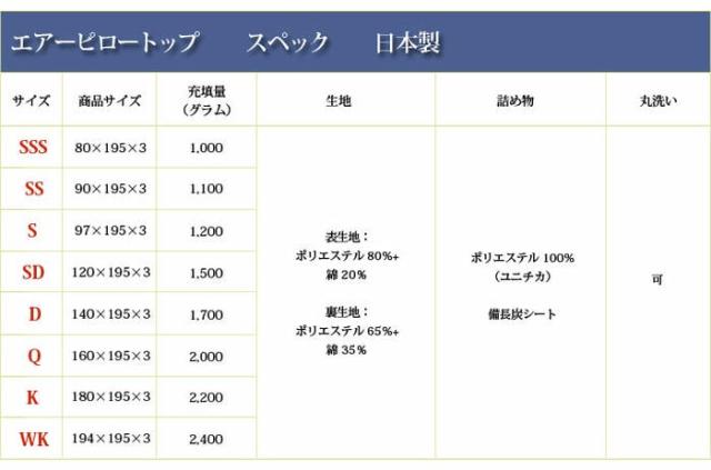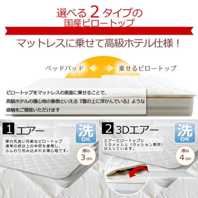 エアーピロートップ キングサイズ K マットレスのみ 幅180センチ マットレスに乗せて高級ホテル仕様 雲の上に浮かんでいるような感触 抜群の寝心地 至福の寝心地 高級