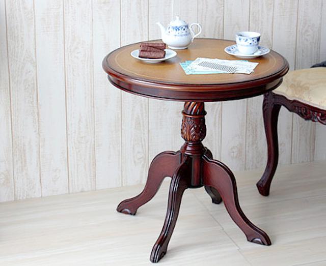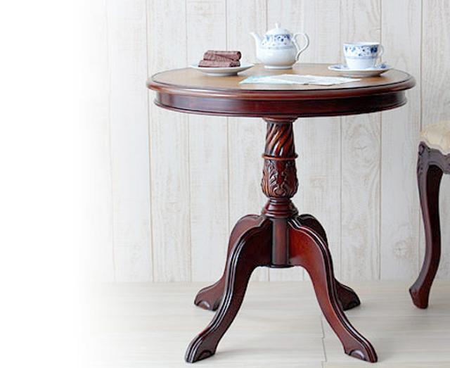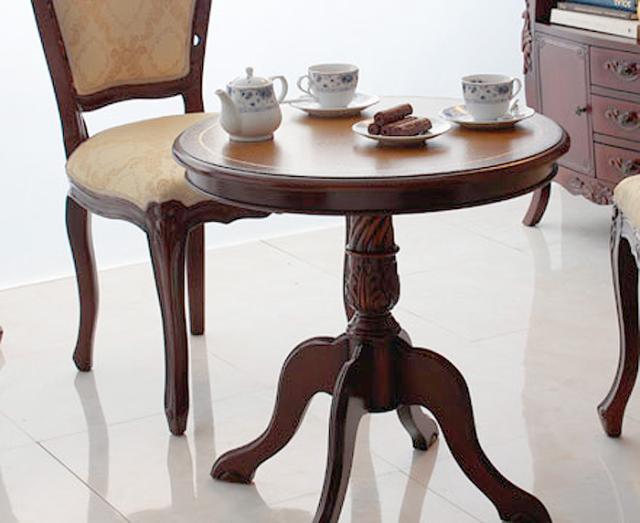 繊細な彫刻を施した、ロココ調の小粋な円テーブル。