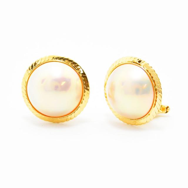シンプルなマベパールのイヤリングです。新品磨き仕上げ済みです。