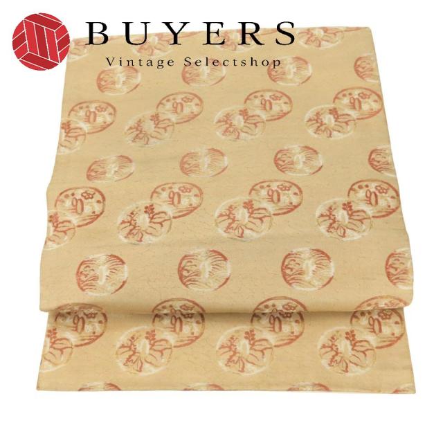 | 品名 | 中古 名古屋帯 九寸 正絹(金銀糸除く) ゴールド系 ピンク 名古屋仕立て 洒落帯 モダン レディース 女性 |