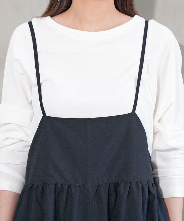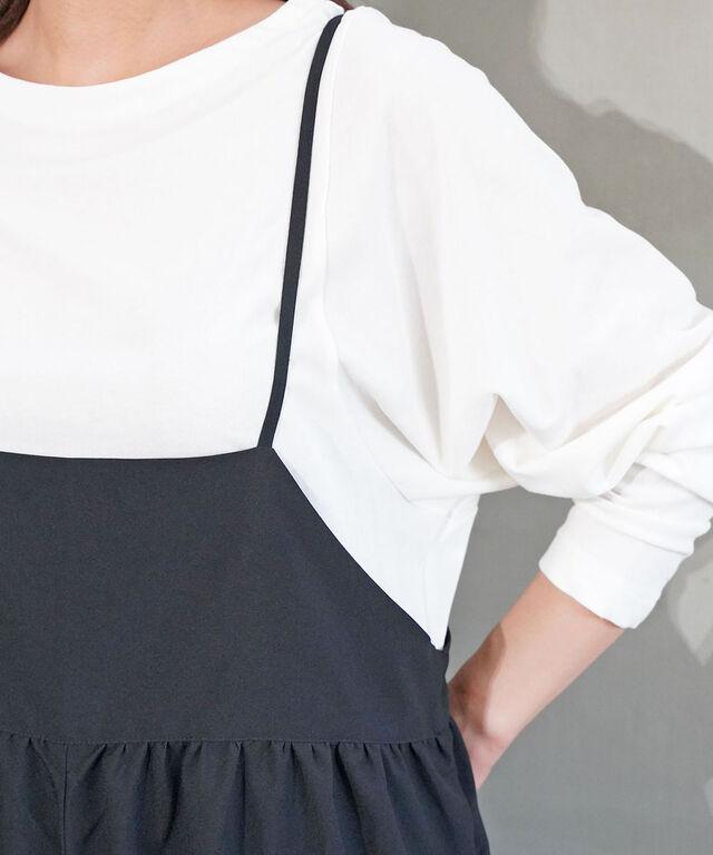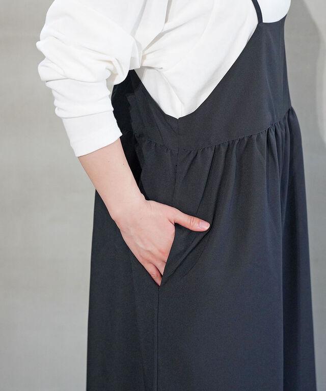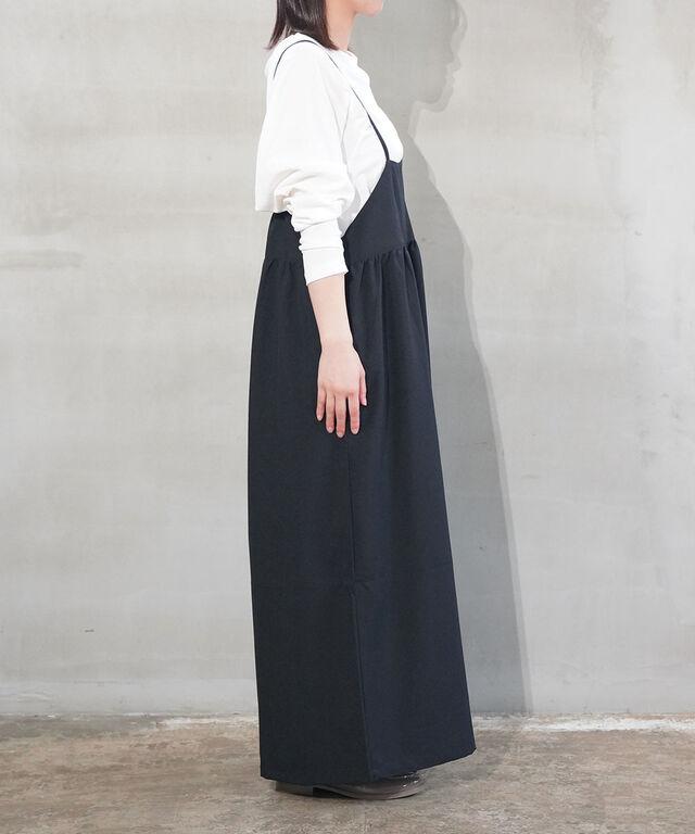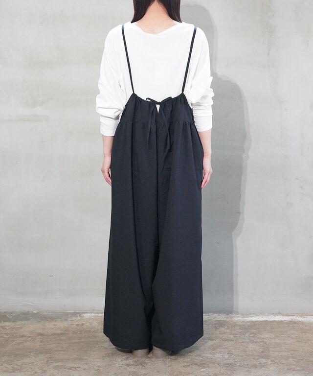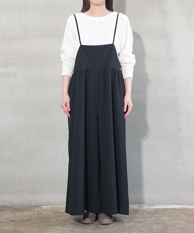 シンプルで着回し力も高そうなワイドなサロペット♪