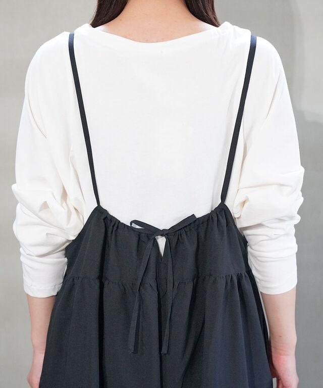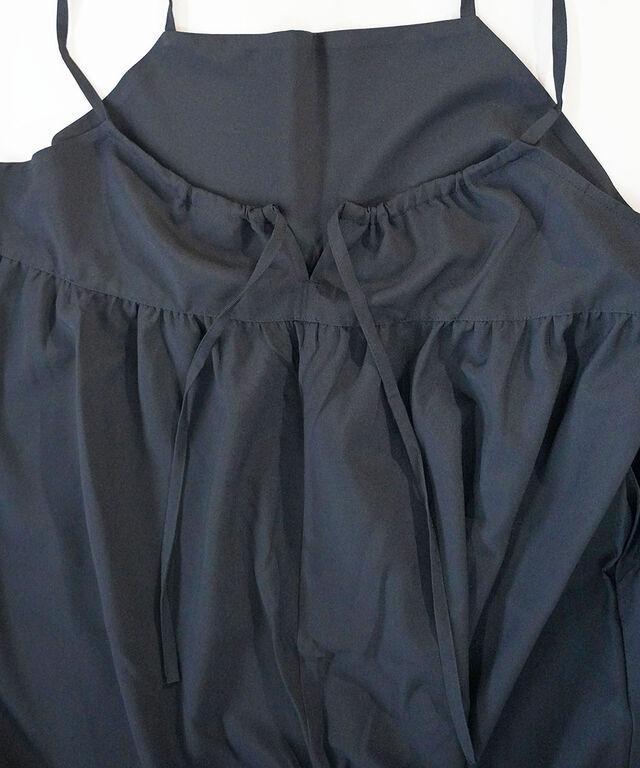 背面のリボンの絞り加減で、簡単に変化を付けられるのもポイント。