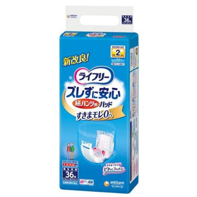 ズレずに安心紙パンツ専用尿とりパッド 昼用 ライフリー 2回吸収 36枚入り ライフリー ユニチャーム リハビリパンツ リハパン おむつ オムツ パッド 箱買い まとめ買い 介護用紙おむつ 介護用