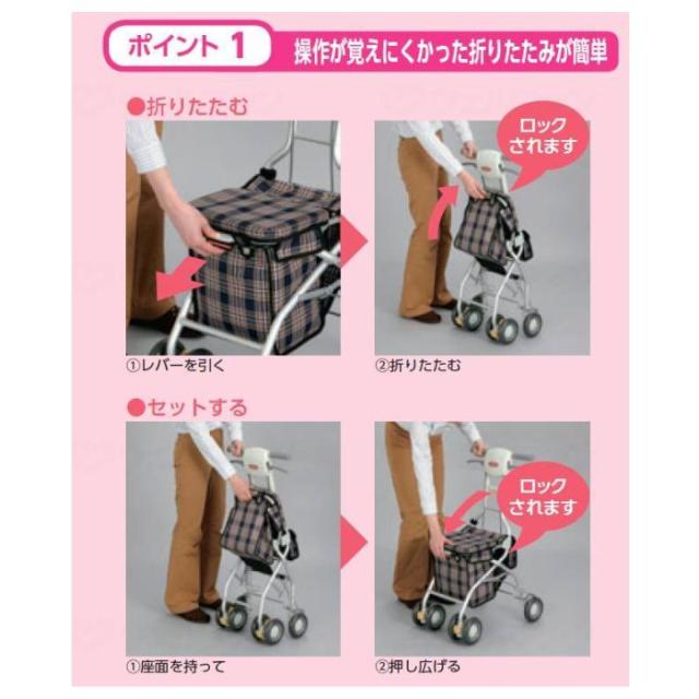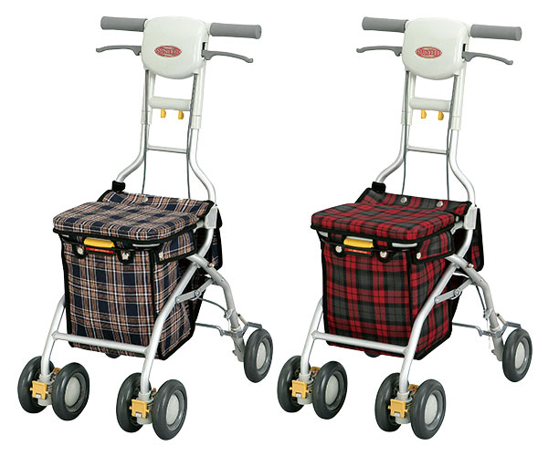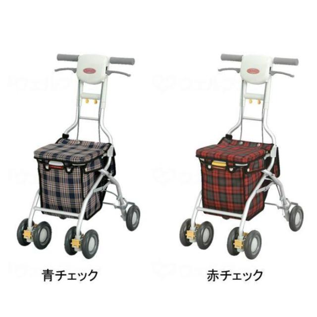 シルバーカー サンフィールショッピング 大容量8L+1Lバッグ アロン化成 ブルー レッド チェック柄 座れる 座面付き コンパクト 折りたたみ 手元ブレーキ 駐車ストッパー 手押し車 おしゃれ 散歩 買い物 旅行 プレゼント 母の日 敬老の日 メーカー直送