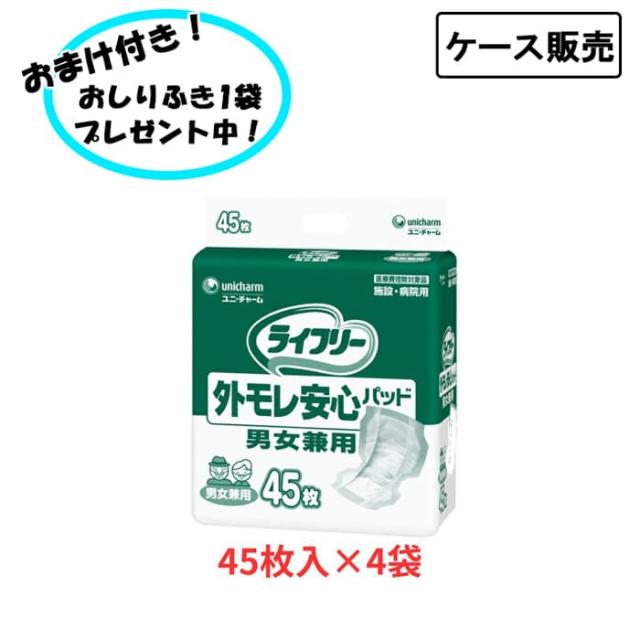 【ケース販売】ユニ・チャーム Gライフリー外モレ安心パッド男女兼用 45枚入り×4袋 まとめ買い 介護用品 大人用紙おむつ おとな用 紙オムツ 介護用品 尿とりパッド 失禁対策 尿漏れ対策 在宅介護 施設