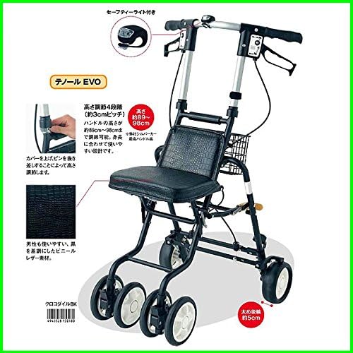 シルバーカー テノールEVO クロコダイルBK 島製作所 男性向けモデル 黒レザー調 軽量 座れる 座面付き 2WAYブレーキ 手元ストッパー ライト付き 2WAYキャスター 折りたたみ自立式 傘・杖受け付 手押し車 散歩 買い物 通院 病院 旅行 プレゼント 母の日 敬老の日